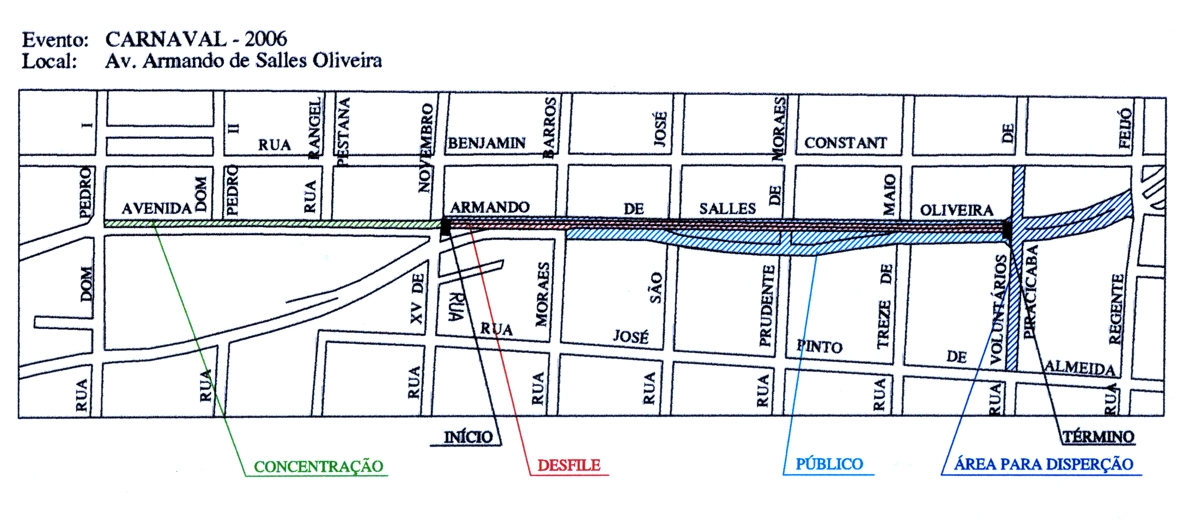 Desfile: Utilizará ½ pista da Av. Armando de Salles ( entre XV de Novembro e Voluntários de Piracicaba);