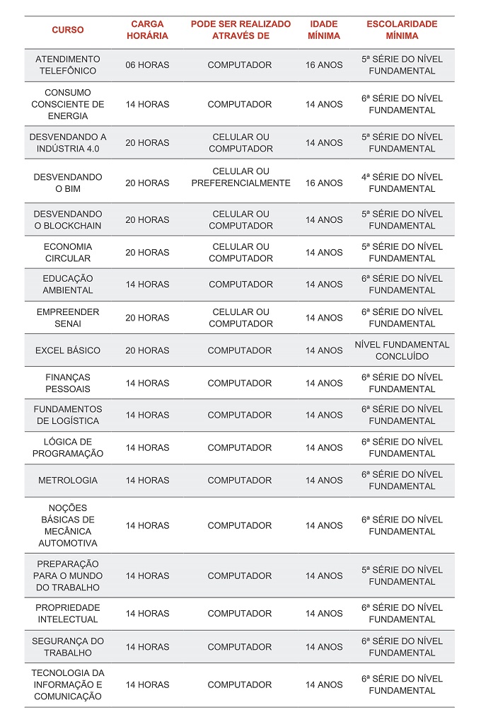 Onde se inscrever: Acessar o site da Semtre www.semtre.piracicaba.sp.gov.br, https://piracicabacentro.sp.senai.br/ ou https://piracicabavila.sp.senai.br/