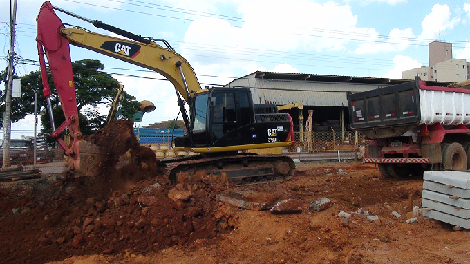 Máquinas escavam terreno para a construção das pistas de rolamento do TPA: reforçadas, em concreto