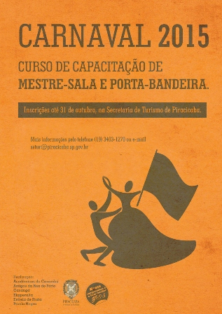 Piracicaba, 28 de outubro de 2014 – Terminam na próxima sexta-feira, dia 31 de outubro, as inscrições para o curso de Capacitação de Mestre-Sala e Porta-Bandeira, que faz parte das ações programadas pela Setur para fortalecer a qualidade dos desfiles das Escolas de Samba do Carnaval piracicabano.