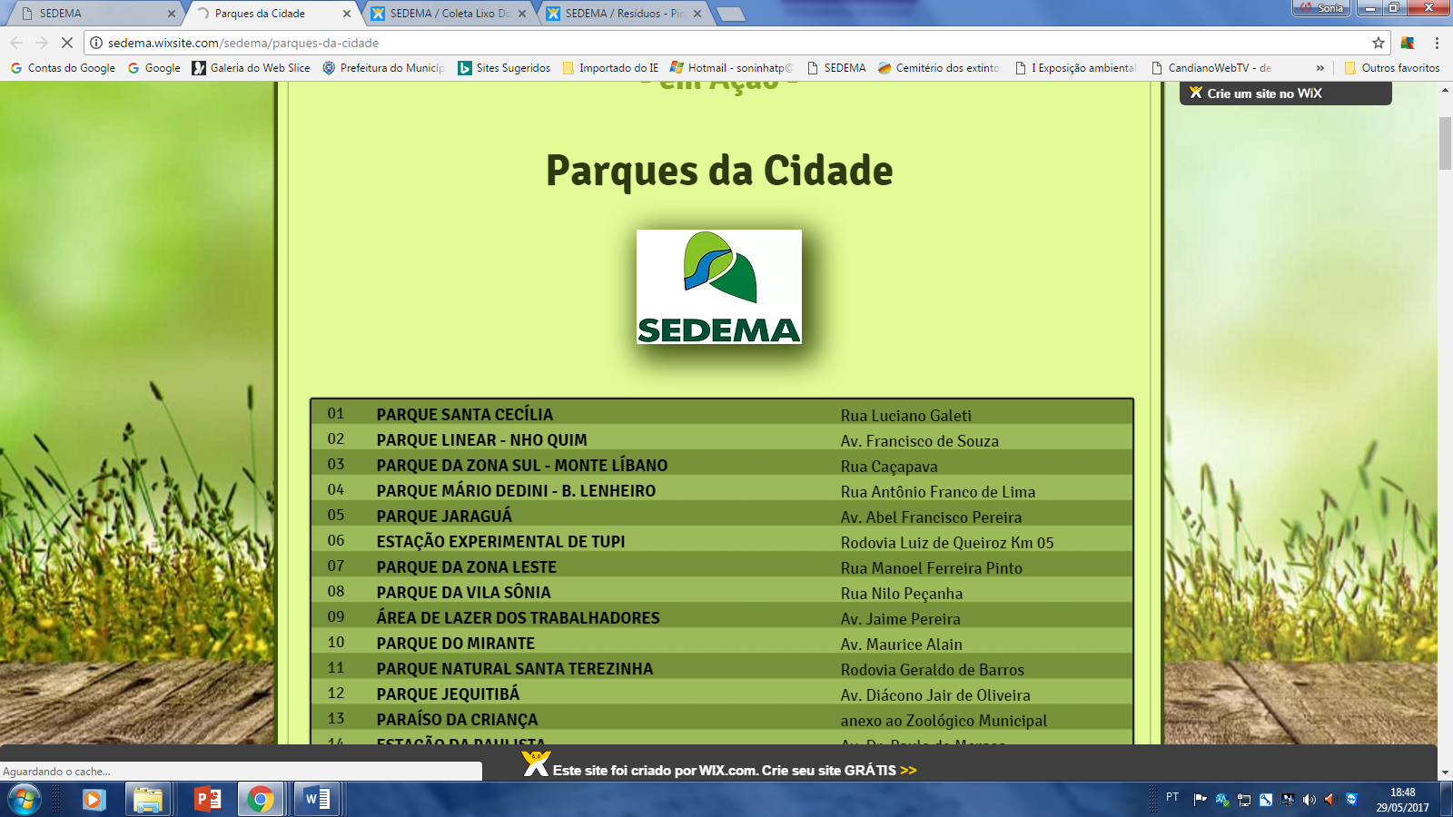 O site da Sedema é dinâmico, e, através do Sedema em Ação, o munícipe encontra as informações atualizadas de forma sistemática, disponibilizando, por exemplo, as obras de construção e reforma nas áreas verdes que a Sedema vem executando em Piracicaba, através de imagens.