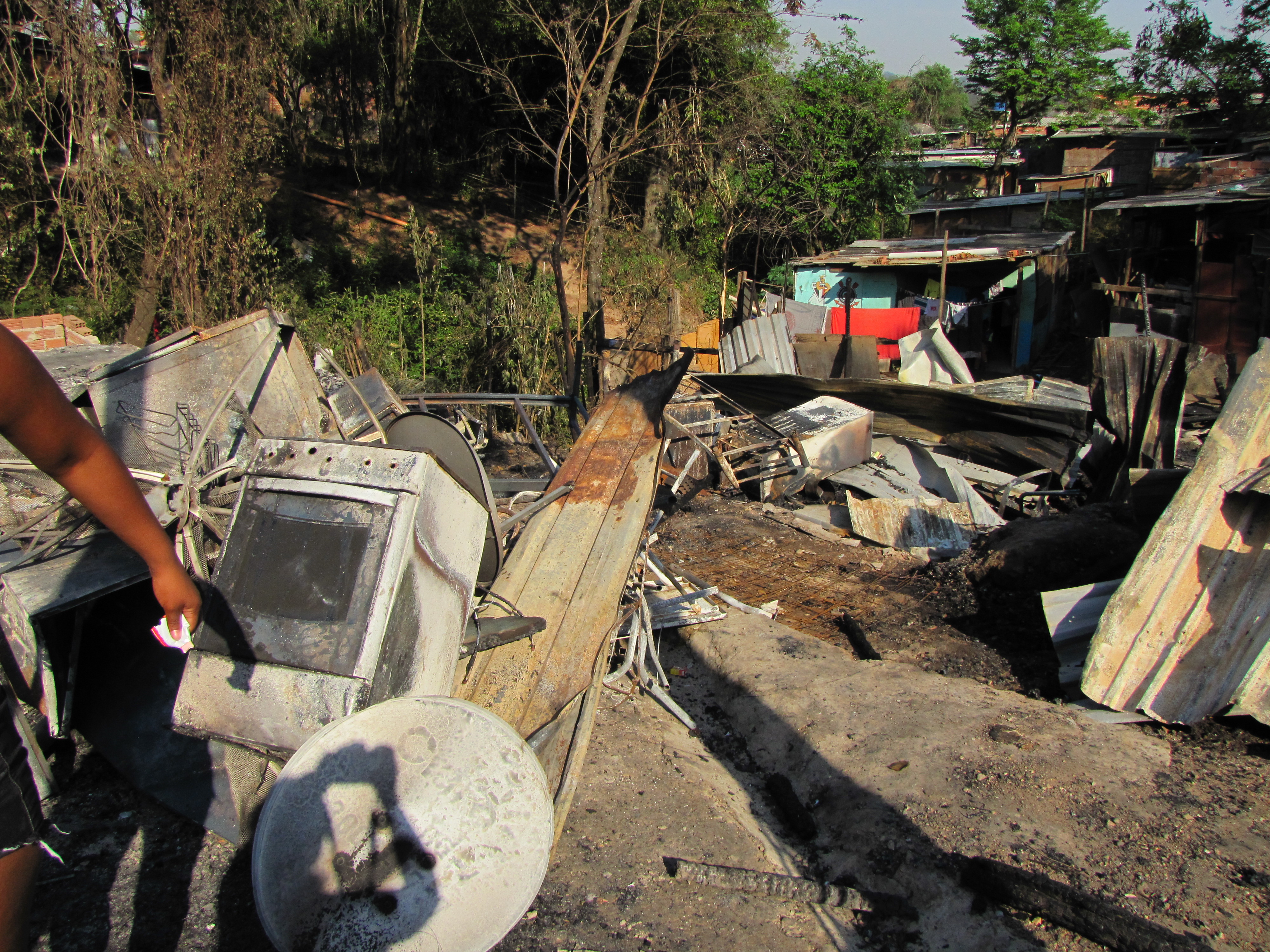 Destroços de eletrodomésticos que foram queimados