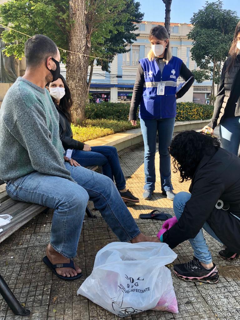 A Secretaria Municipal de Assistência e Desenvolvimento Social (Smads), em parceria com o Consultório na Rua e Caps (Centro de Atenção Psicossocial) AD – Álcool e outras Drogas, serviços da Secretaria Municipal de Saúde, realizou, na manhã de hoje, 23/07, na praça José Bonifácio, ação com a população em situação de rua para explicar sobre os serviços disponíveis, no intuito de vinculá-los e aproximá-los. Planejamento da força-tarefa começou em junho e já passou pela Praça Takaki, na sexta-feira (16). Intenção é passar por todos os locais de concentração deste público nas próximas semanas.