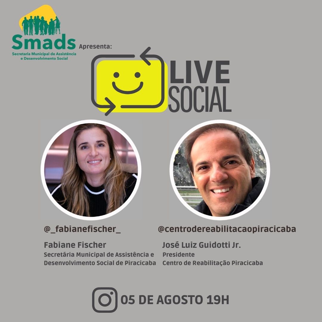 Piracicaba, 4 de agosto de 2020 – A Secretaria Municipal de Assistência e Desenvolvimento Social (Smads) inicia amanhã, às 19h, uma série de lives com presidentes ou representantes das Organizações da Sociedade Civil que têm parceria com a Smads. A primeira live contará com o presidente do Centro de Reabilitação de Piracicaba José Luiz Guidotti Junior. Na quinta será o dia da assistente social e coordenadora técnica da Fundação Jaime Pereira (Funjape), Taís Leite Marino. A partir da próxima semana até o final de setembro, as lives sociais, com aproximadamente 40 minutos de duração, acontecem de segunda a quinta-feira, sempre às 19h, com transmissão pela conta pessoal do Instagram da titular da pasta Fabiane Fischer Gomes Oliveira. A agenda completa de lives está em construção.