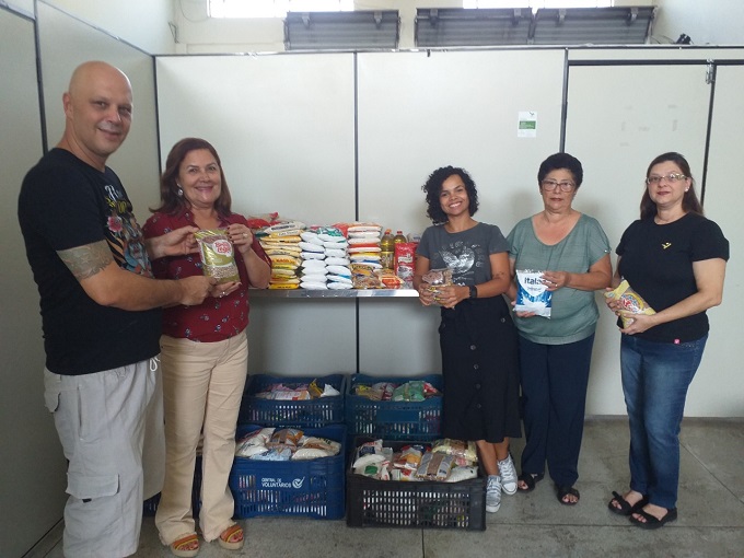 Elvio Alexandre Camolesi fez a entrega dos alimentos para Sandra Negri