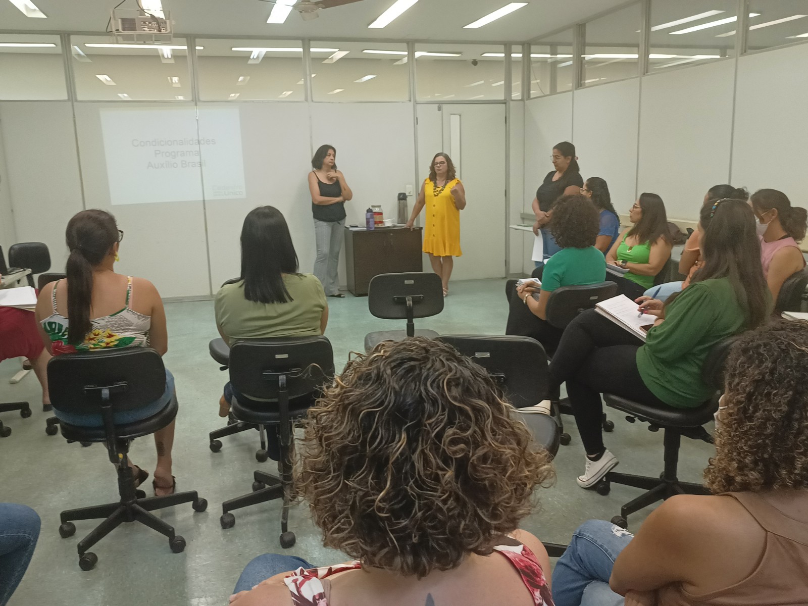 A equipe do Cadastro Único reuniu ontem, dia 24/11, técnicos da rede socioassistencial, das Secretarias Municipais de Assistência e Desenvolvimento Social (Smads), Saúde e Educação, em capacitação sobre as condicionalidades para o recebimento de benefícios sociais do governo federal.