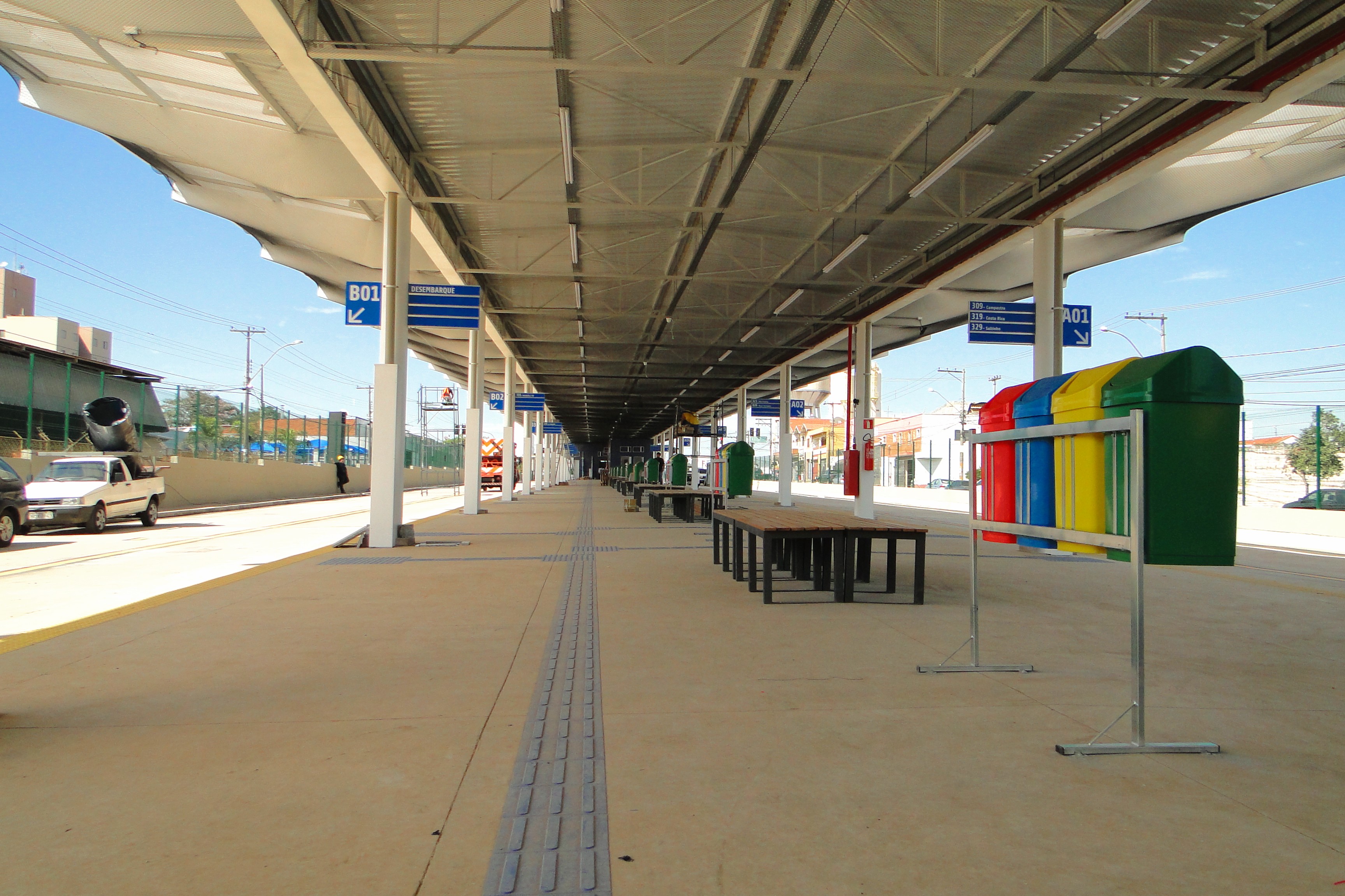 Lixeiras, bancos e piso podotátil estão em toda a extensão do TPA