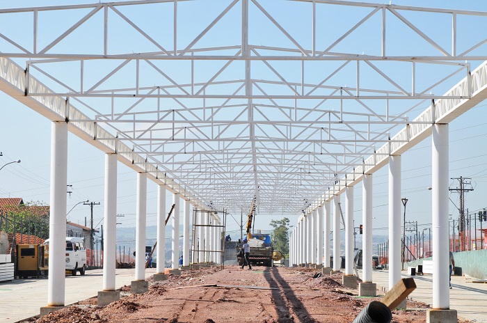 As obras do novo Terminal Vila Sônia entraram nesta semana na fase de lançamento e posicionamento da estrutura metálica para a cobertura da plataforma, que abrigará os ônibus e os usuários do transporte coletivo. Também estão sendo feitos os reboques das paredes e o assentamento de azulejos no bloco da administração, que fica junto à bilheteria principal, e no bloco de apoio ao público, na segunda bilheteria. A construção, que integra o projeto de mobilidade urbana dos corredores de ônibus e tem investimento de R$ 6,7 milhões, vai passar de uma área de 5.000 m2 para 10.207 m2. Com isso, sua capacidade de atendimento aos usuários do transporte coletivo em Piracicaba, que hoje é de 89 mil/mês, também será dobrada. A previsão de entrega do novo terminal é para o segundo semestre deste ano.