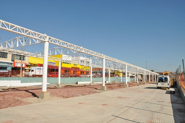 De acordo com a Secretaria de Obras, a pista reforçada em concreto, por onde circularão os coletivos, já está concluída. Os pilares para a cobertura da plataforma também já foram instalados. A área de apoio aos motoristas está em fase de acabamento interno e abrigará uma sala de descanso, banheiro feminino e masculino e refeitório. Ao lado dessa construção ficará um estacionamento reserva para ônibus e funcionários.