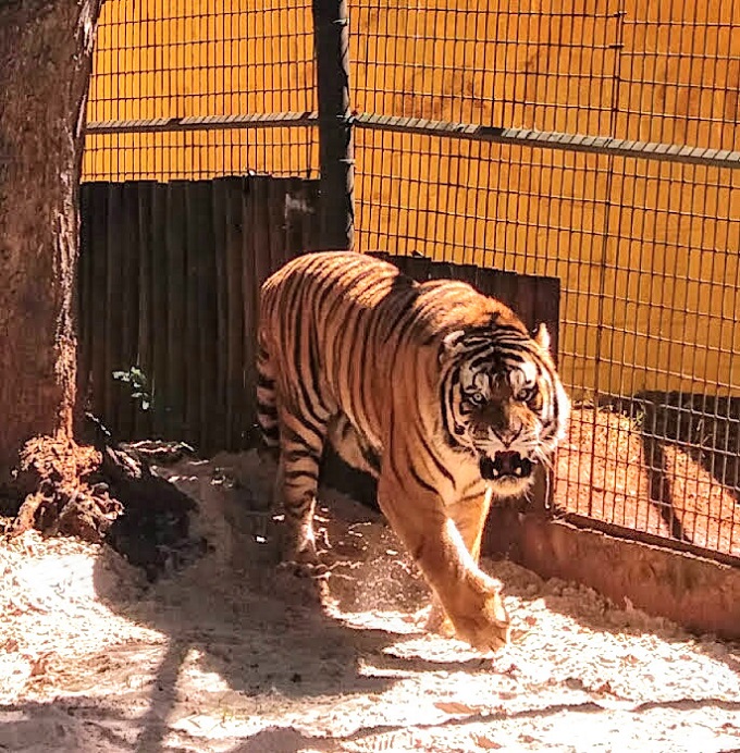 O animal, ainda sem nome, nasceu em cativeiro no zoo de origem e vai ocupar o recinto que antes era de Léo, leão que veio da Bahia e que morreu aos 15 anos em julho do ano passado. O espaço foi adaptado e revitalizado para acomodar o tigre com conforto e segurança.