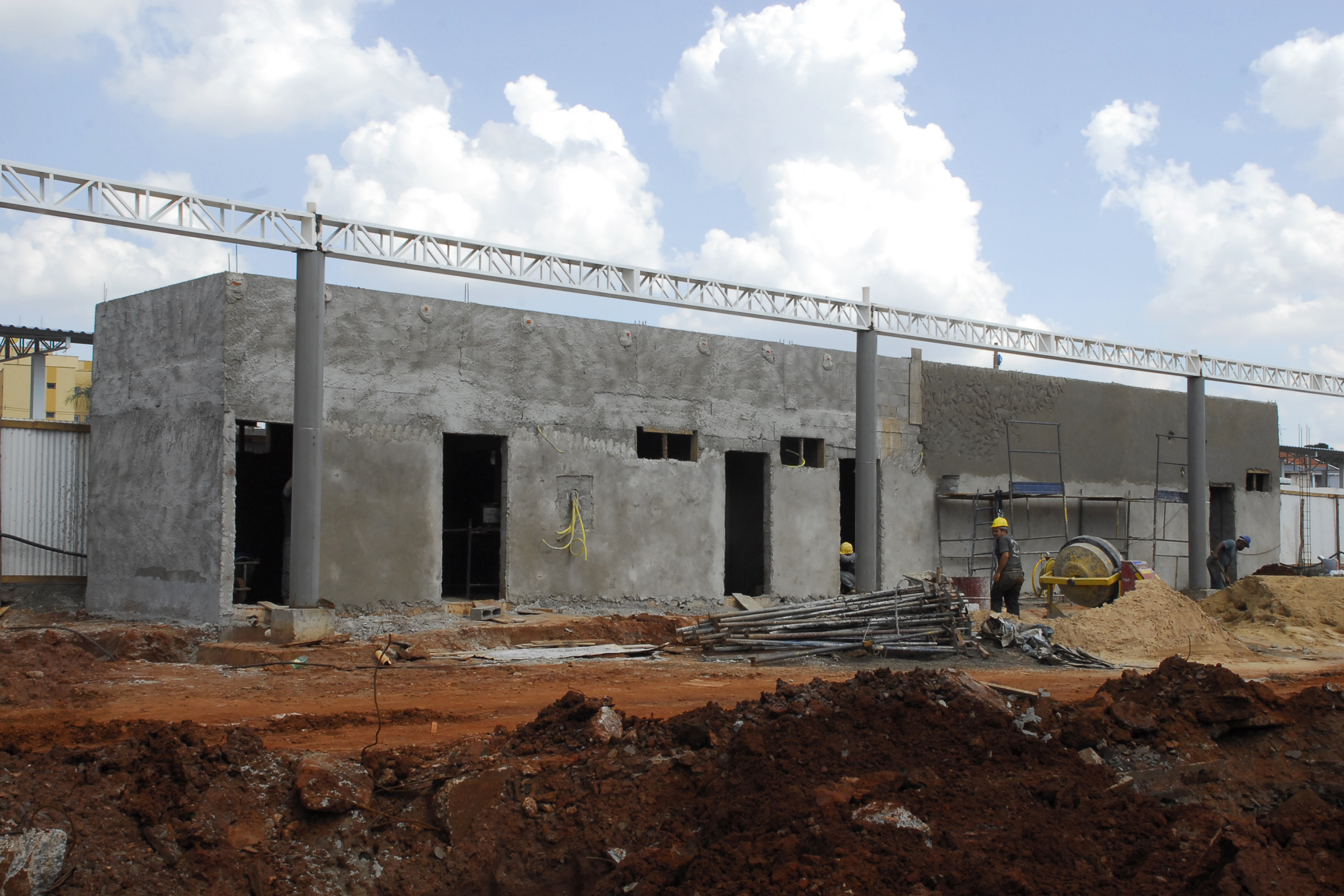 Obras de alvenaria do prédio de apoio ao público, onde ficam vestiários, banheiros, refeitórios, e bilheteria estão concluídas