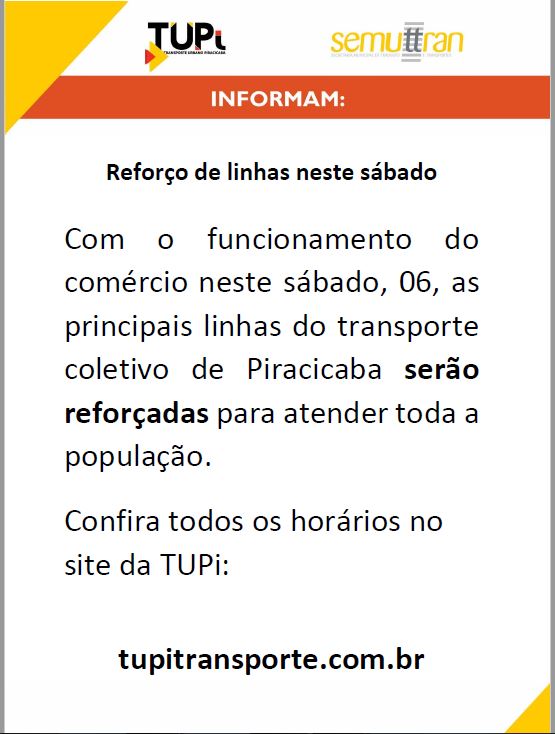 Transporte coletivo com o funcionamento do comércio neste sábado, 06