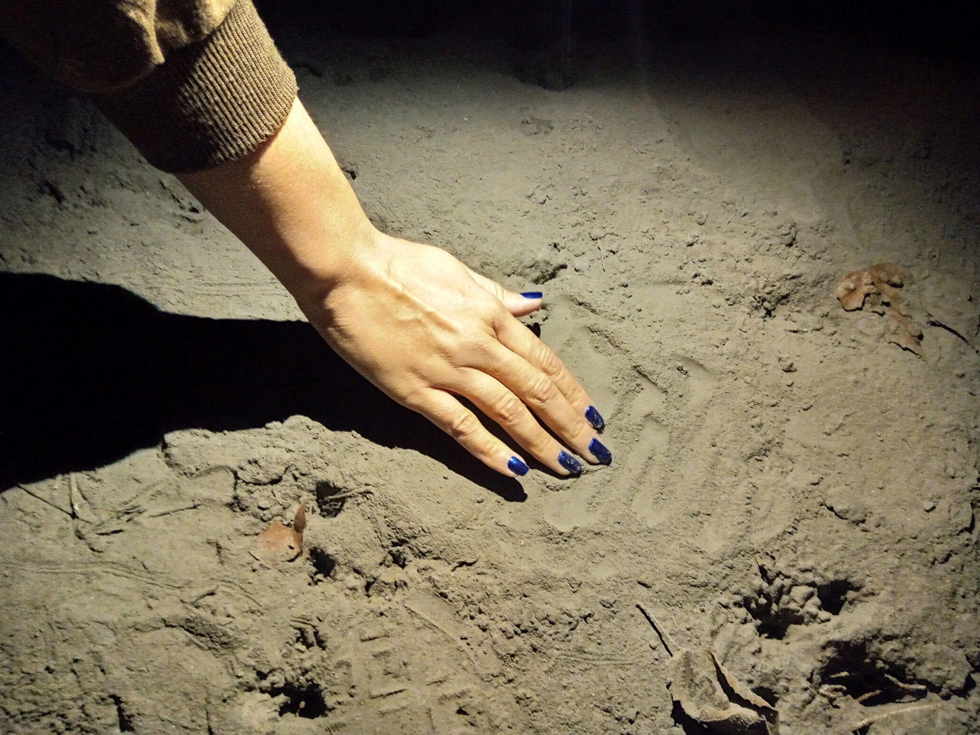 Cinzas sedimentadas no interior do túnel (Foto: Eleni Destro)