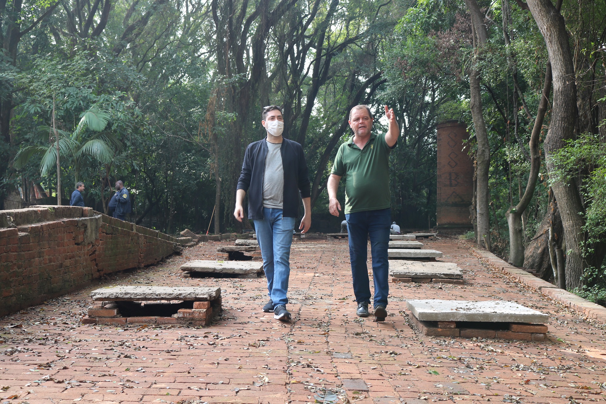 Marcelo Cachioni e Antonio Padovan caminham sobre o túnel, local que está sendo limpo e revitalizado (Foto: Eleni Destro)