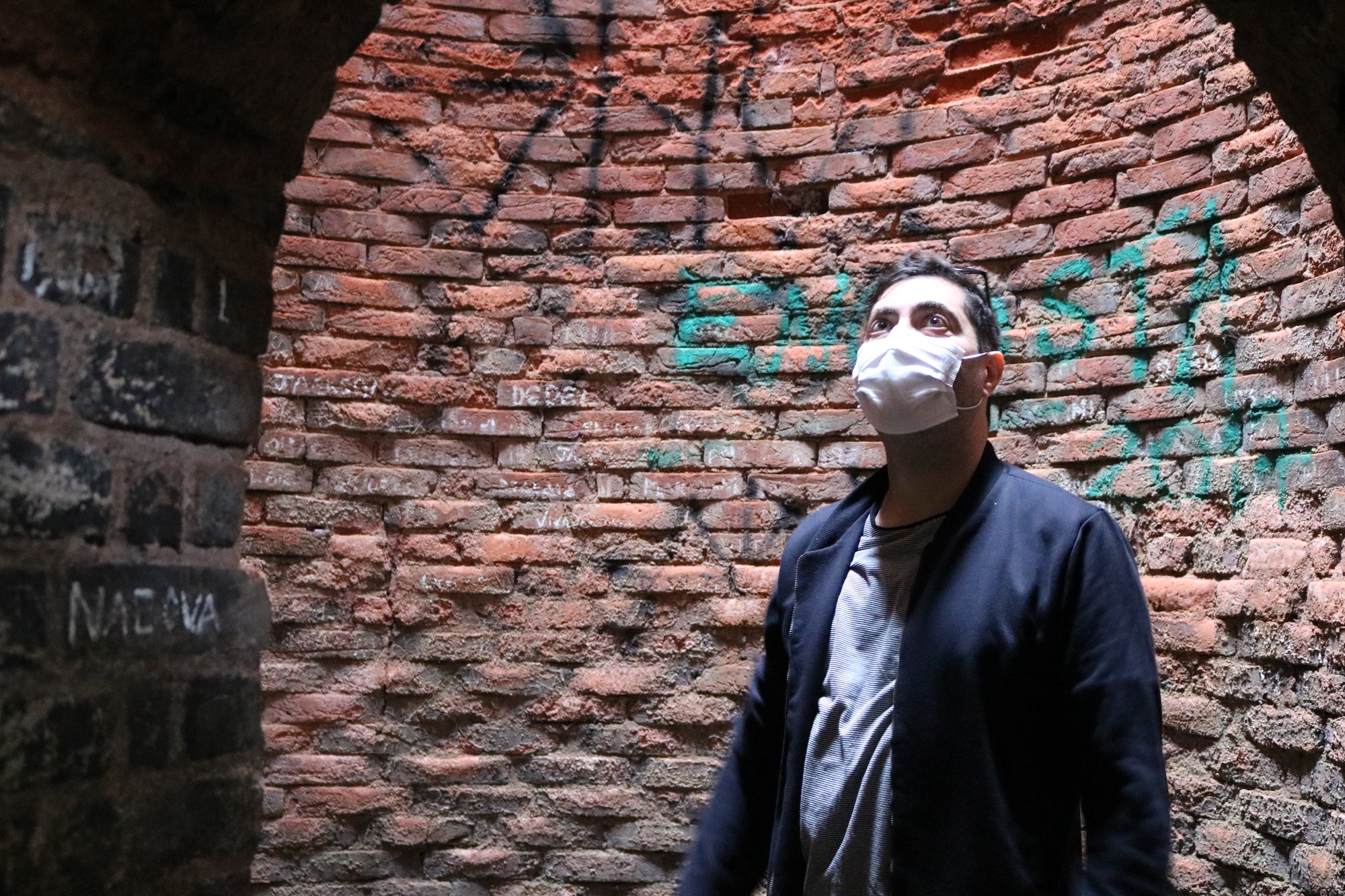 Arquiteto Marcelo Cachioni no interior da chaminé que fica no final do túnel (Foto: Eleni Destro) FOTOS ANTIGAS DO ENGENHO CENTRAL
