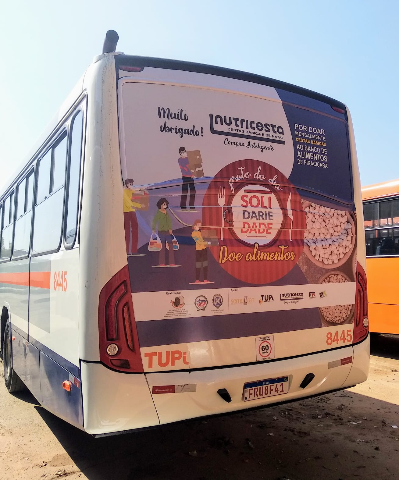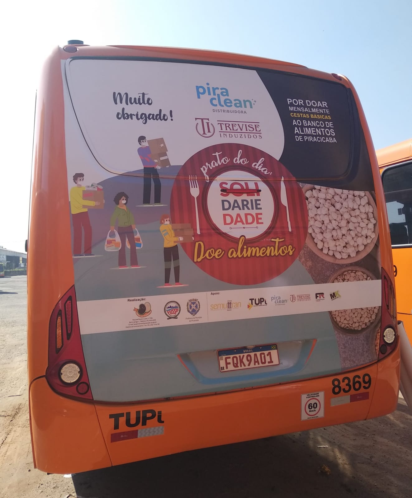 A empresa TUPi, responsável pelo transporte coletivo de Piracicaba, aderiu à Campanha de Arrecadação de Alimentos 2021: Prato do Dia: Solidariedade – Doe Alimentos, realizada pela Prefeitura, por meio do Fundo Social de Solidariedade. Na tarde de hoje, 17/06, no Engenho Central, a TUPi mostrou ônibus adesivados com o logo da campanha e anunciou que irá realizar doações mensais – 2 toneladas/mês já estão garantidas – e que também mobilizou seus parceiros e fornecedores para que apoiem o projeto.
