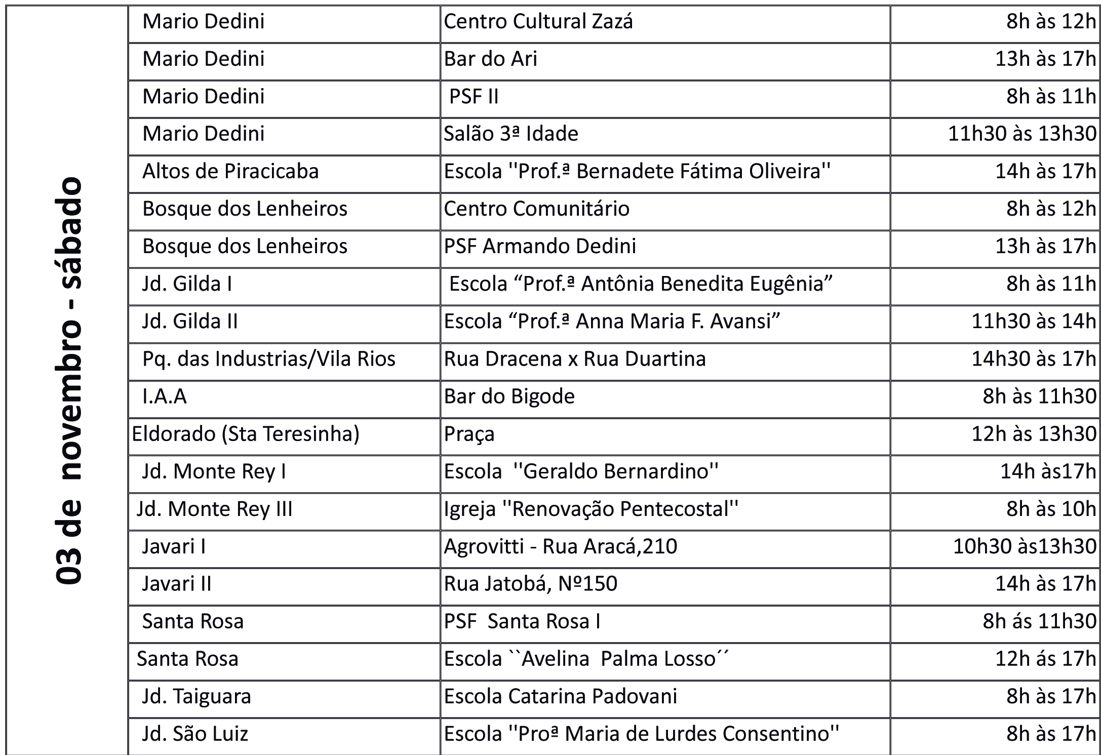 A campanha prossegue no próximo sábado (03/11). Confira os locais:
