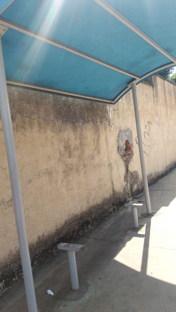 Ponto de ônibus destruído pela ação de vândalos fica na avenida Manoel Conceição, na Vila Rezende