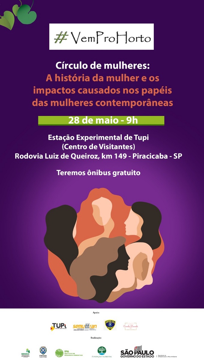 Amanhã, sábado, 28/05, das 9h às 12h, acontecerá mais uma edição do Vem Pro Horto, com o Círculo de Mulheres: A História da Mulher e os Impactos Causados nos Papéis das Mulheres Contemporâneas. A Prefeitura, por meio da Secretaria de Mobilidade Urbana, Trânsito e Transportes (Semuttran), disponibilizará a linha de ônibus gratuita de transporte público, com saída às 8h10 do Terminal Central de Integração, da plataforma B03. O retorno do Horto está previsto para às 12h30. Os interessados em participar devem se inscrever previamente no link https://forms.gle/oZm4DPiwK9A6Ybfz6. As vagas são limitadas.