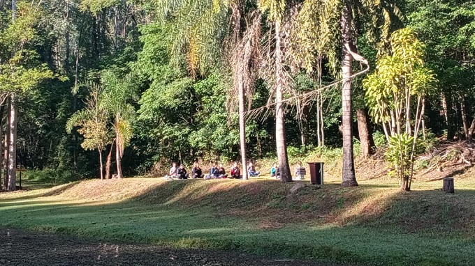 A Estação Experimental de Tupi (Horto de Tupi) promoveu gratuitamente, no sábado, 04/06, o Banho de Floresta, atividade de imersão na natureza e aula de yoga. Cerca de 25 pessoas participaram do evento, que faz parte do Vem pro Horto. A próxima atividade acontecerá dia 25/06, 9h às 12h, com a oficina de saneamento ambiental.