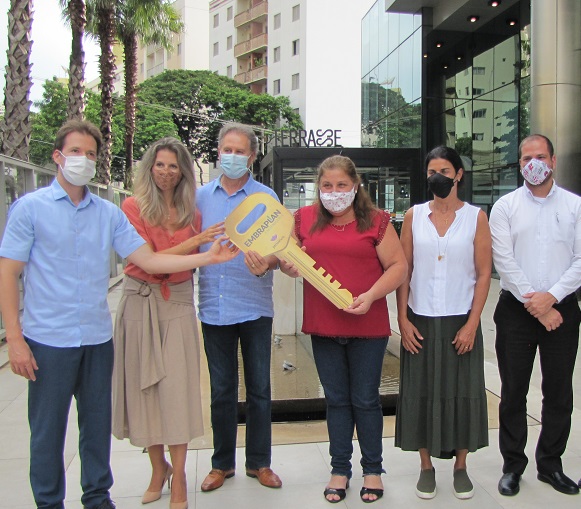 Piracicaba, 12 de janeiro – Tânia Cristina Sotto Oyan recebeu nesta tarde, das mãos de Antônio Francisco Valério, dono da Embraplan, as chaves do apartamento, prêmio da Campanha Ação entre Amigos, que arrecadou verba para instituições beneficiadas pela Festa das Nações de Piracicaba – cancelada em 2020 devido à pandemia de coronavírus. A entrega ocorreu no auditório do Splendor Office, prédio que abriga o escritório da construtora.