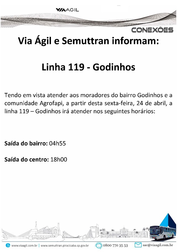 Via Ágil e Semuttran informam novos horários de linhas