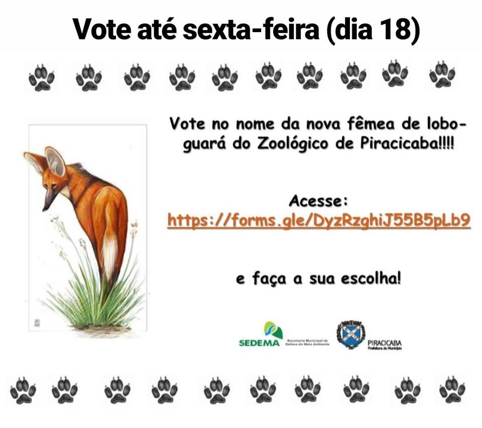 Votação para escolha do nome da femea de Lobo Guará é até sexta feira, 18