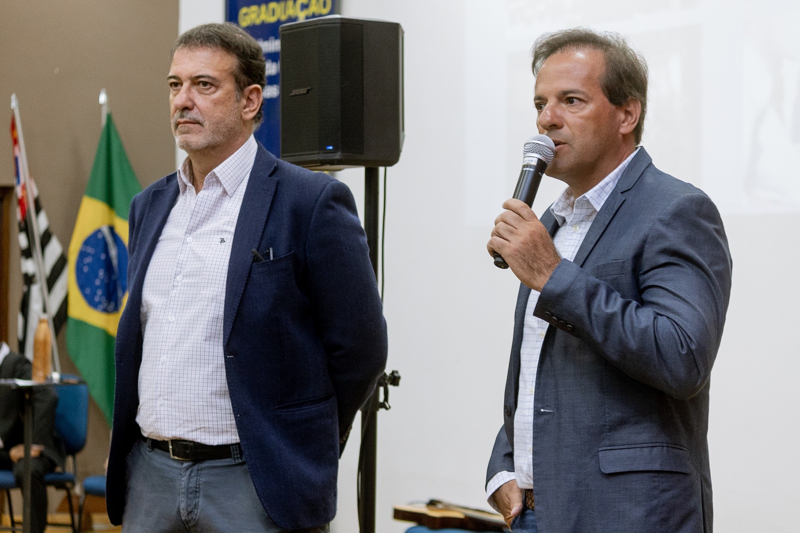 O prefeito Luciano Almeida e o secretário Guidotti, durante a abertura do evento