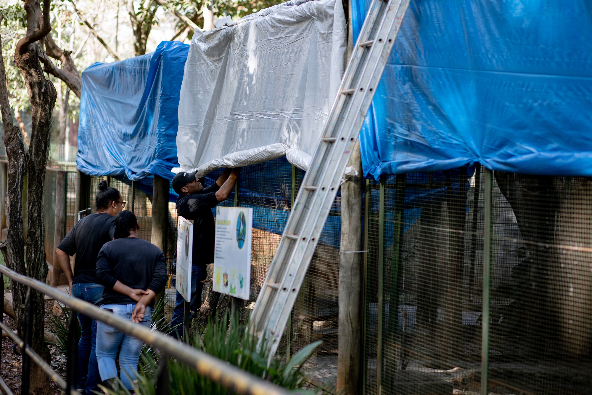 Os recintos das aves estão recebendo cobertura extra com lonas