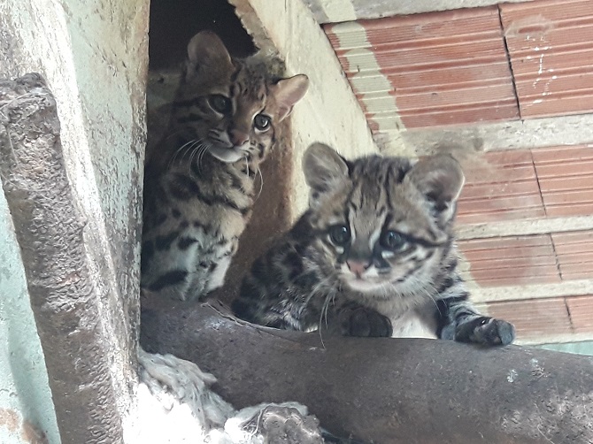 Gato-do-mato – O gato-do-mato macho jovem foi resgatado depois de ter sido atropelado por uma colheitadeira de cana no município de Taiuva (SP). Ele sofreu lacerações de pele e fratura em uma das pernas quando estava com aproximadamente 10 meses. A bióloga informou que o animal está bem, mas ainda permanece em recuperação da fratura óssea. Hoje está com um ano
