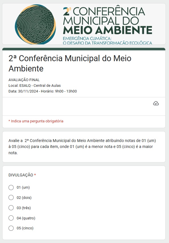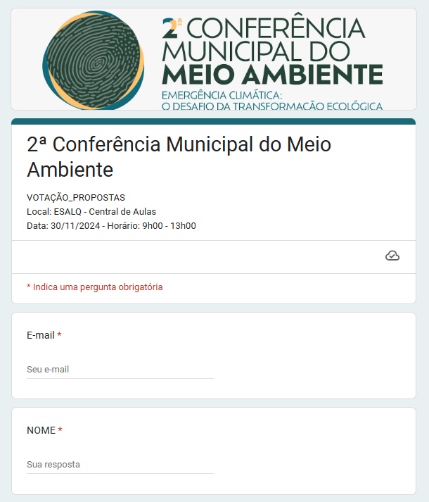 Obs.: esse formulário será aberto para votação somente durante a Plenária da 2ª Conferência Municipal do Meio Ambiente.