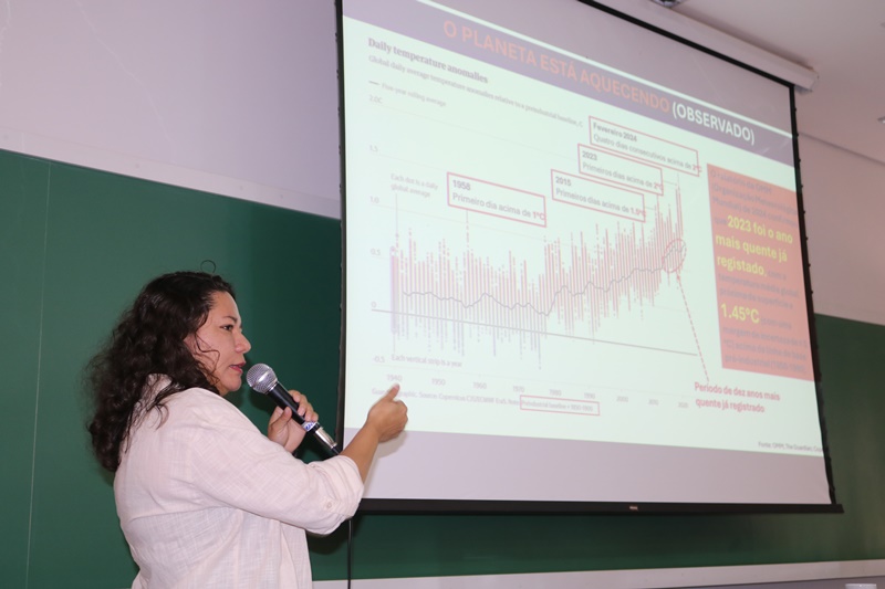 - Palestra inicial: A emergência climática: o desafio da transformação ecológica, com a Profa. Nathalia Nascimento (Geógrafa, doutora em Ciência do Sistema Terrestre, professora do departamento de ciências florestais da Esalq, coordenadora do Laboratório de Educação e Política Ambiental (OCA/USP)).